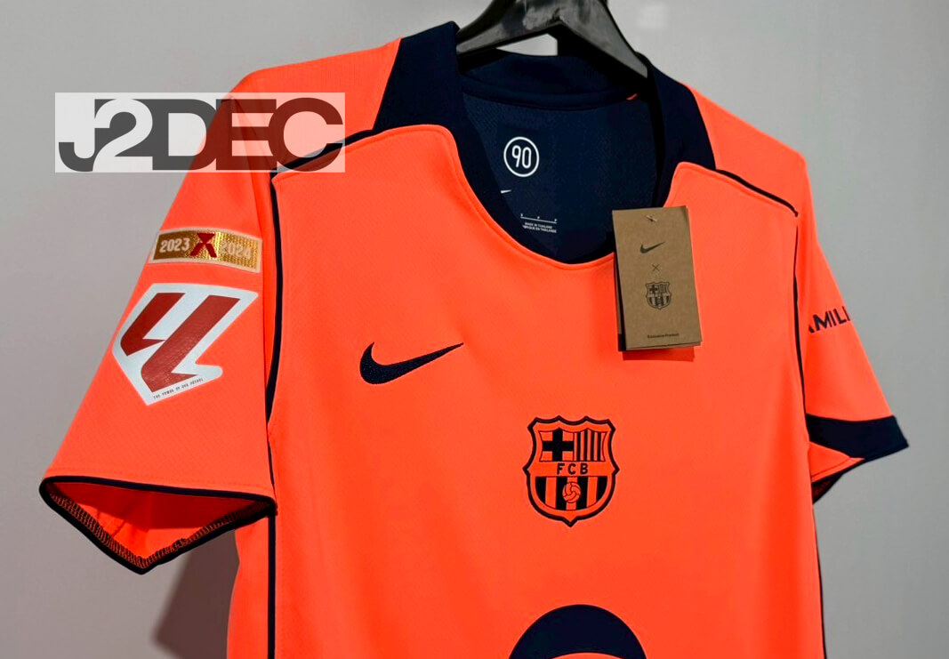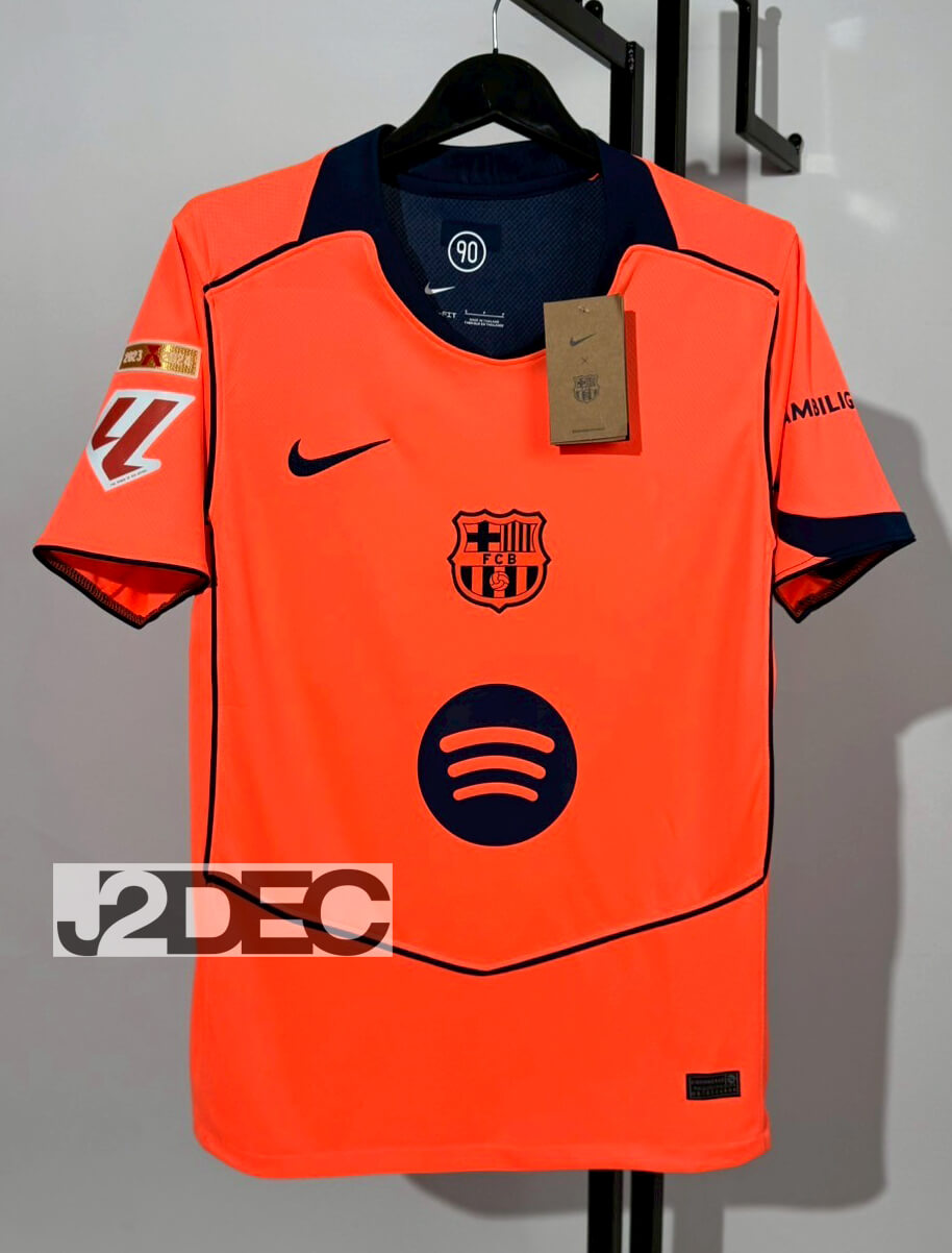 FC Barcelona บาร์เซโลน่า Third ชุดสาม เกรดแฟนบอล ปี 2025/26 ( อาร์ม LALIGA+ชื่อนักเตะ+เบอร์ )