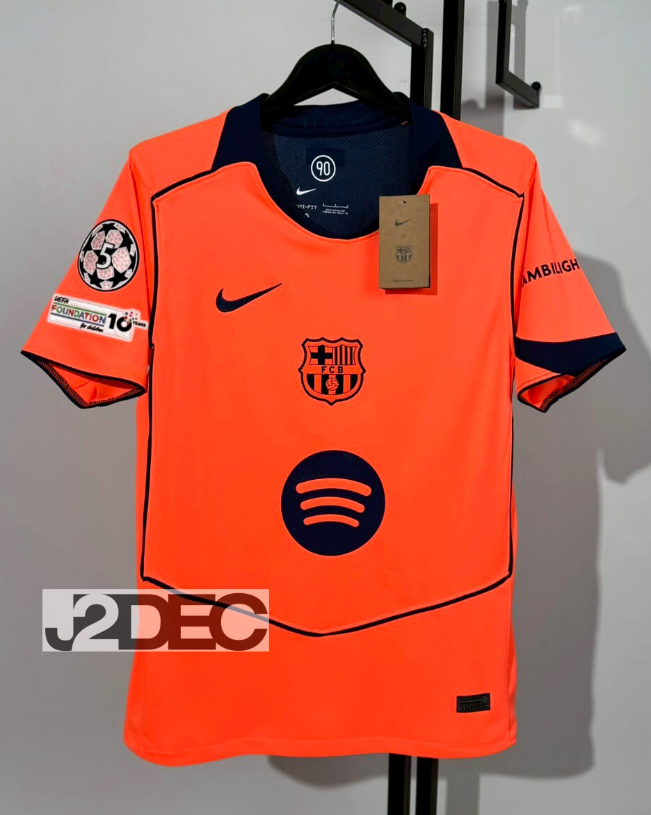 FC Barcelona บาร์เซโลน่า Third ชุดสาม เกรดแฟนบอล ปี 2025/26 ( อาร์ม UCL+ชื่อนักเตะ+เบอร์ )