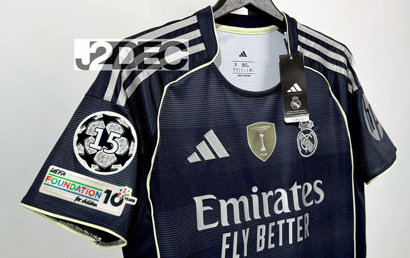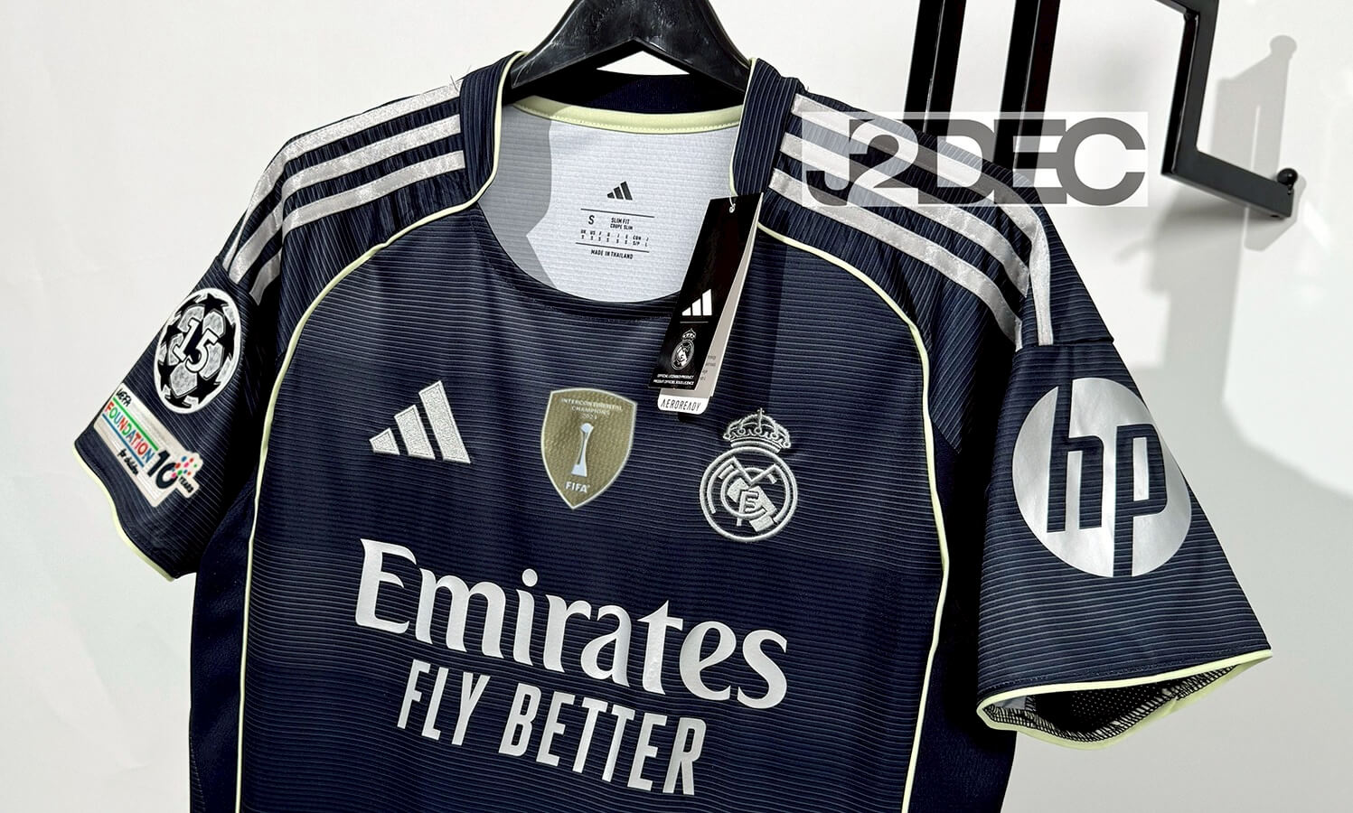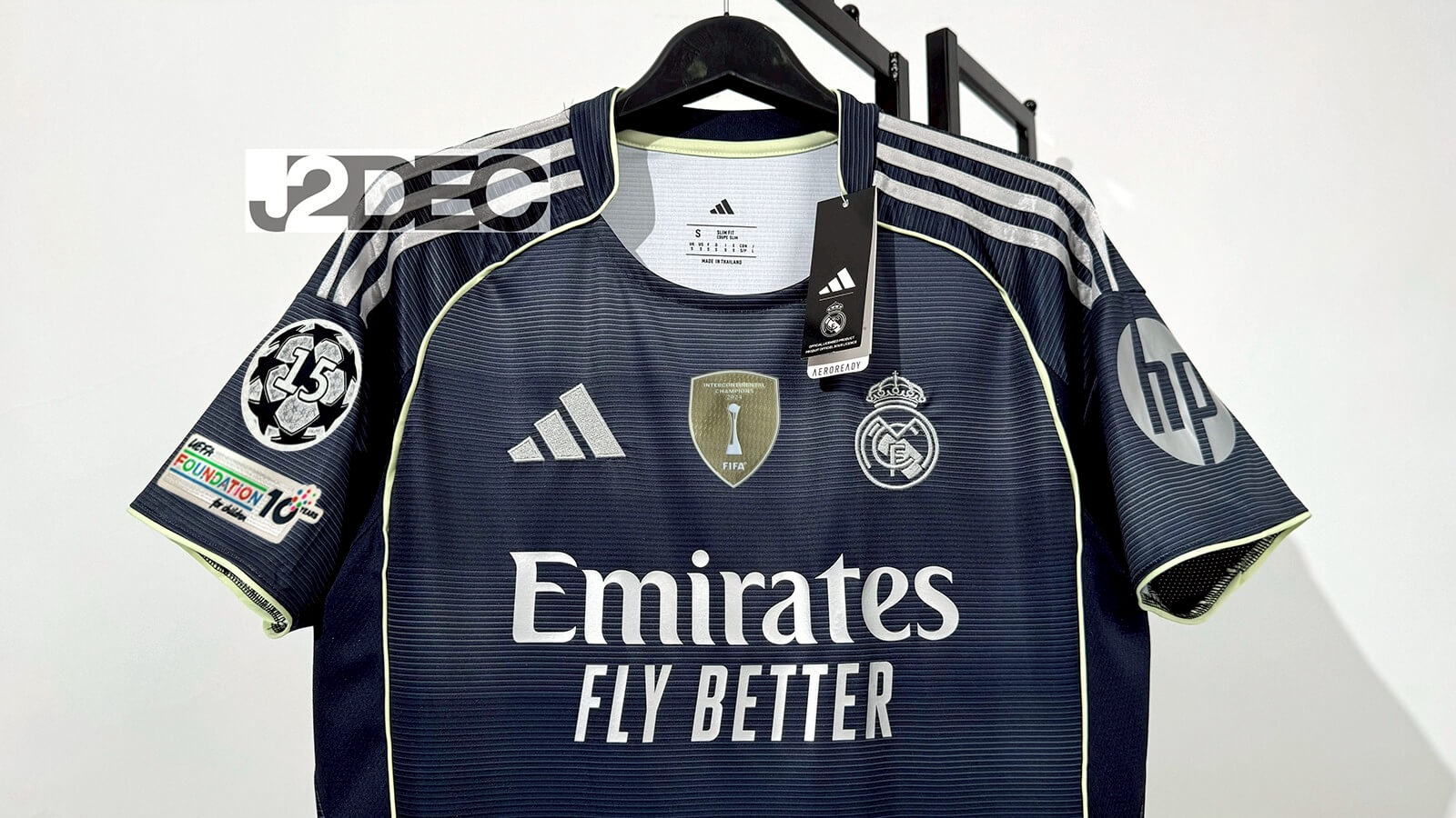 Real Madrid เรอัล มาดริด ชุดเยือน เกรดแฟนบอล ปี 2025/26 ( อาร์ม ยูฟ่าแชมป์เปี้ยนลีก+ชื่อนักเตะ+เบอร์+FIFA 2024 )