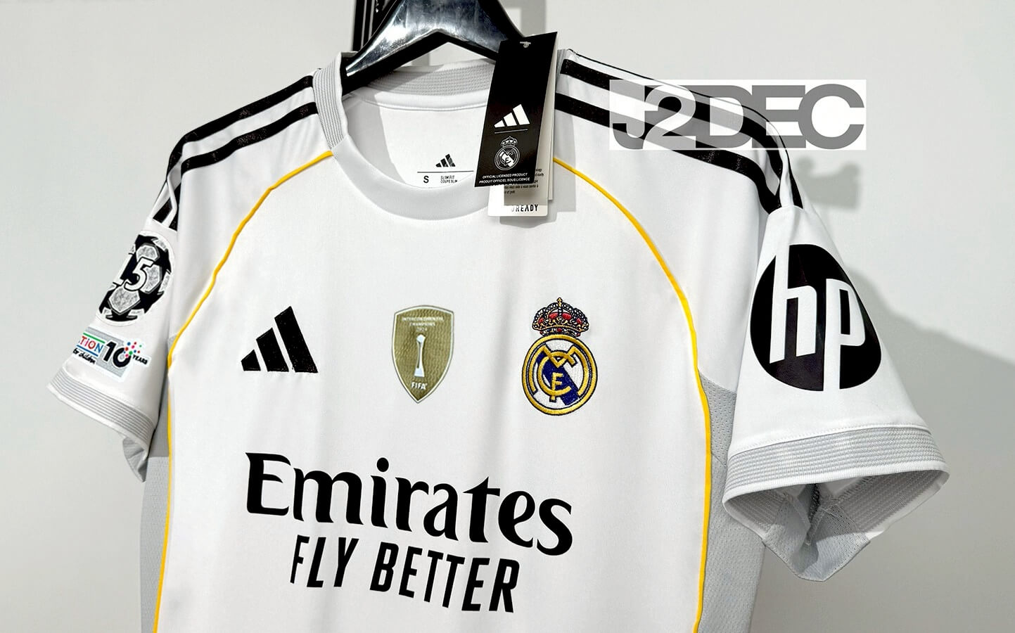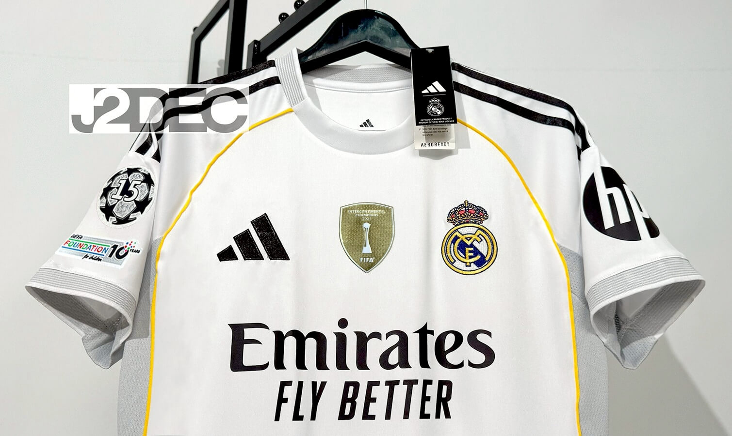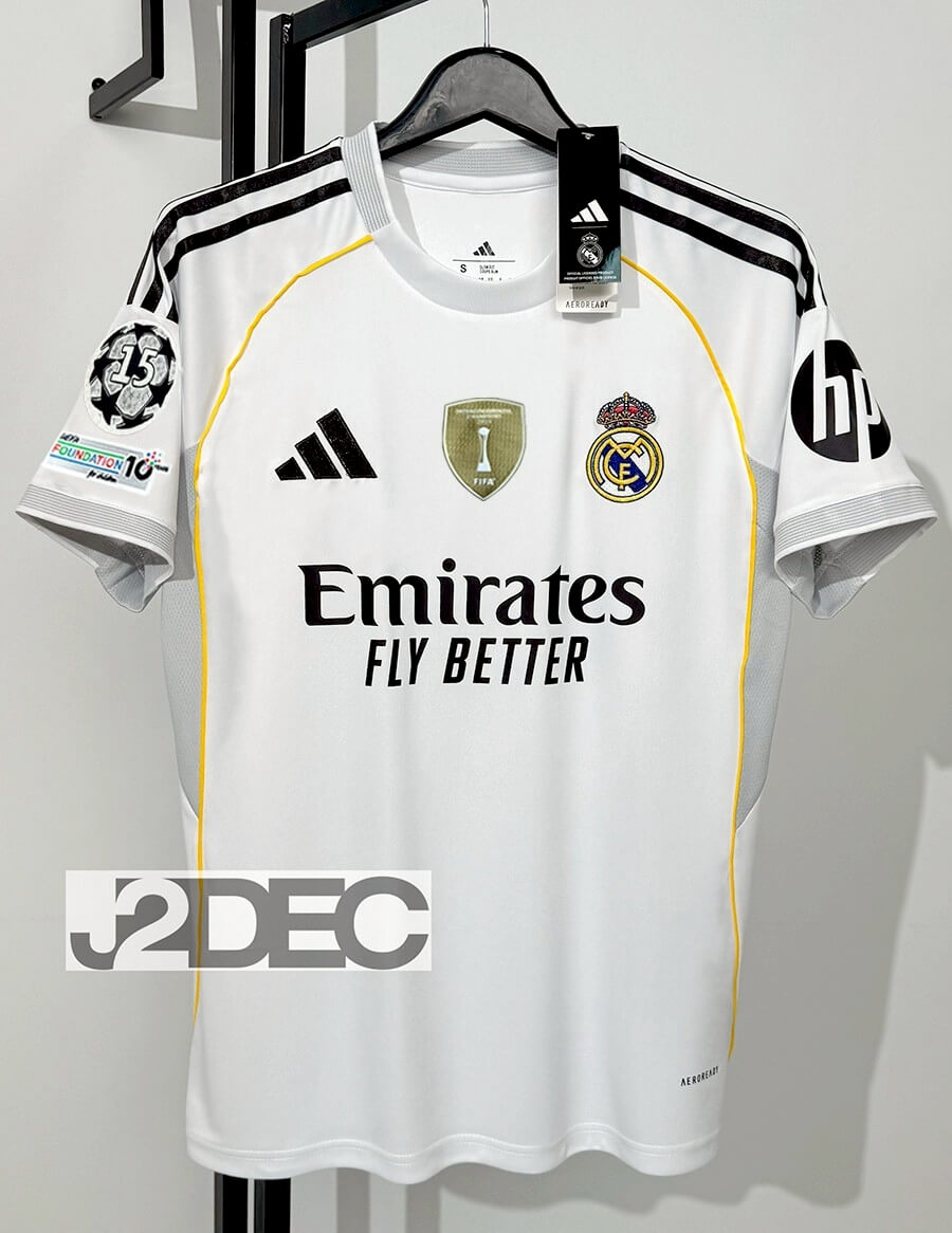 Real Madrid เรอัล มาดริด ชุดเหย้า เกรดแฟนบอล ปี 2025/26 ( อาร์ม ยูฟ่าแชมป์เปี้ยนลีก+ชื่อนักเตะ+เบอร์+FIFA 2024 )