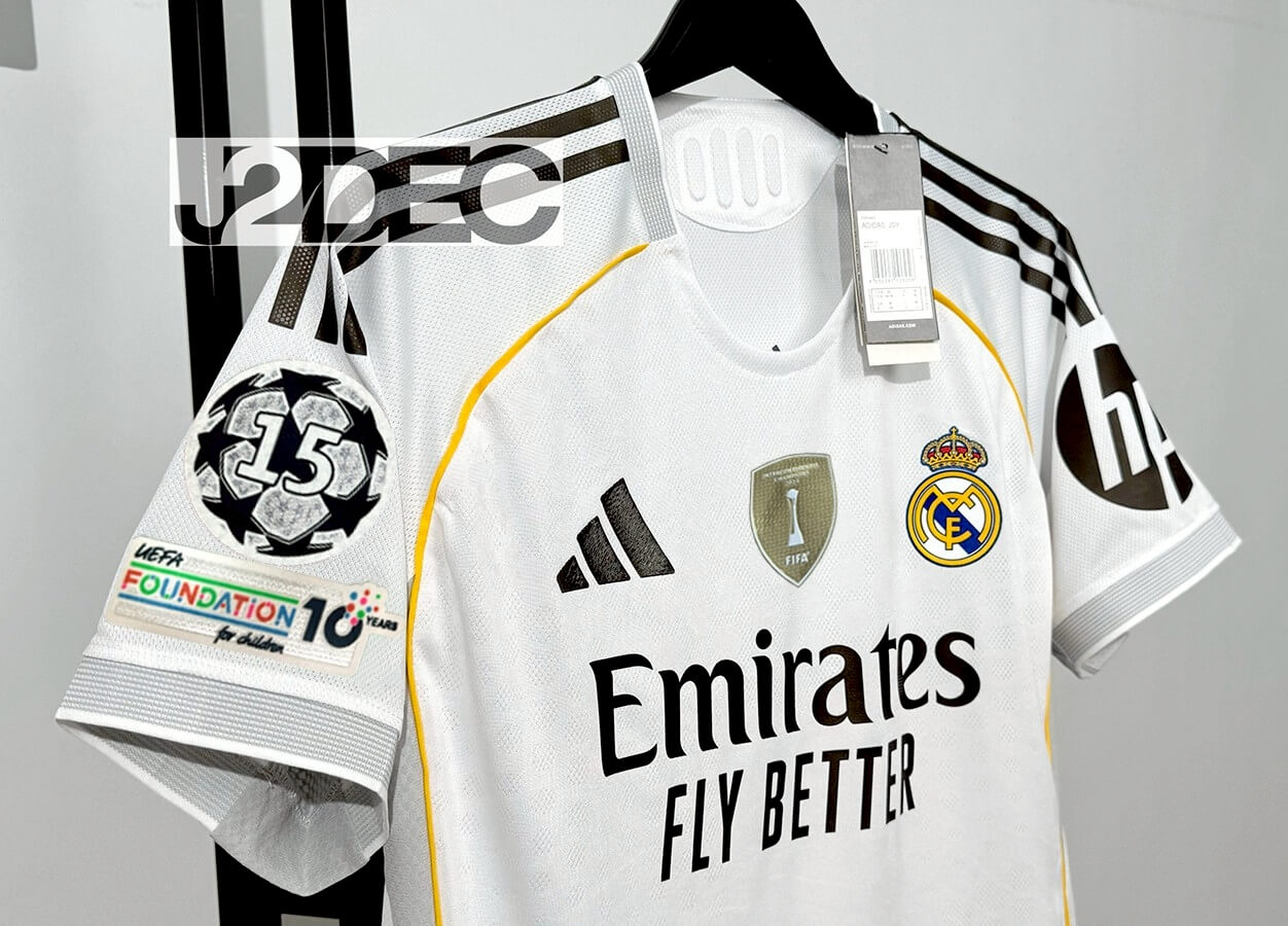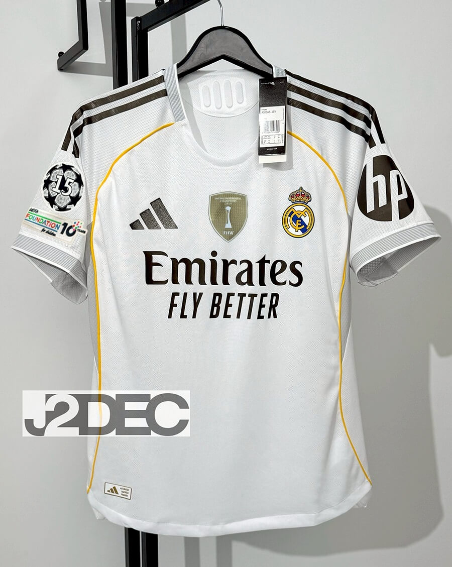 Real Madrid เรอัล มาดริด Home ชุดเหย้า เกรดนักเตะ PLAYER ปี 2025/26 ( อาร์ม UCL+ชื่อนักเตะ+เบอร์+FIFA 2024 )