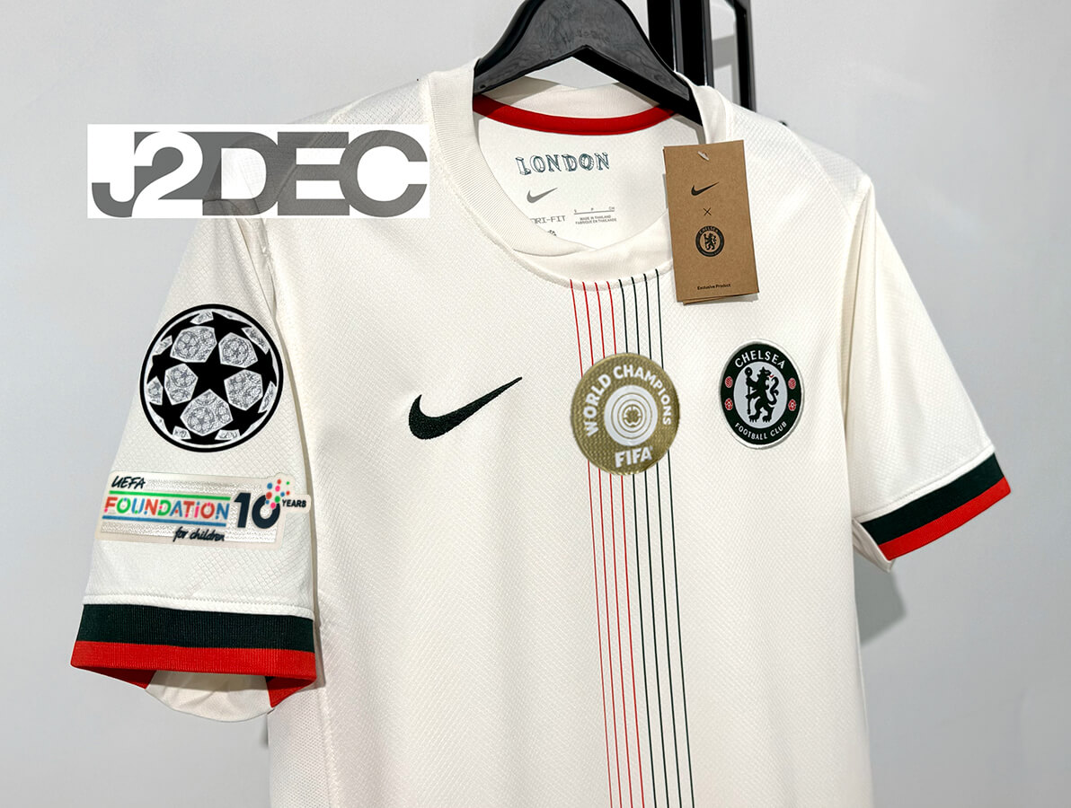 Chelsea เชลซี ชุดเยือน เกรดแฟนบอล ปี 2025/26 (อาร์ม ยูฟ่าแชมป์เปี้ยนลีก + ชื่อนักเตะ + เบอร์)