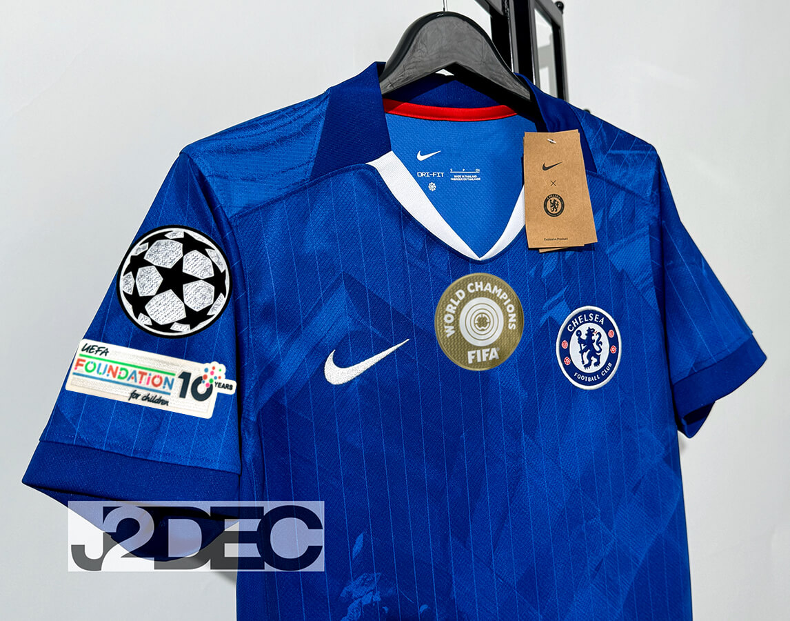Chelsea เชลซี ชุดเหย้า เกรดแฟนบอล ปี 2025/26 (อาร์ม ยูฟ่าแชมป์เปี้ยนลีก + ชื่อนักเตะ + เบอร์)