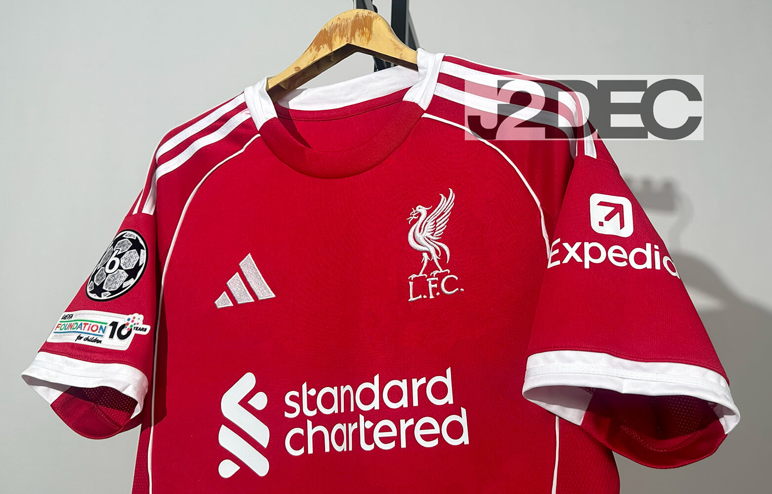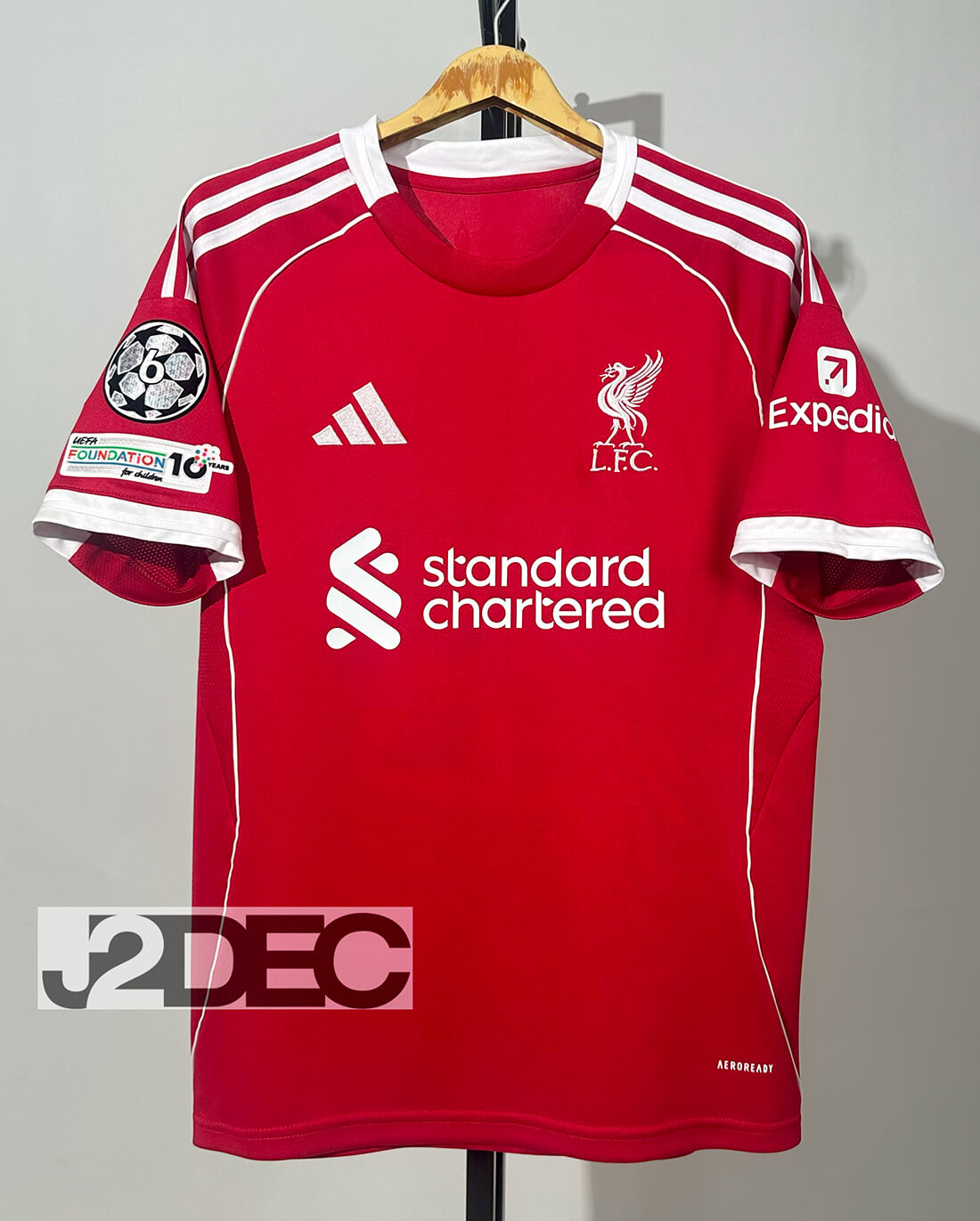 Liverpool ลิเวอร์พูล ชุดเหย้า เกรดแฟนบอล ปี 2025/26 (อาร์ม ยูฟ่าแชมป์เปี้ยนลีก + ชื่อนักเตะ + เบอร์)