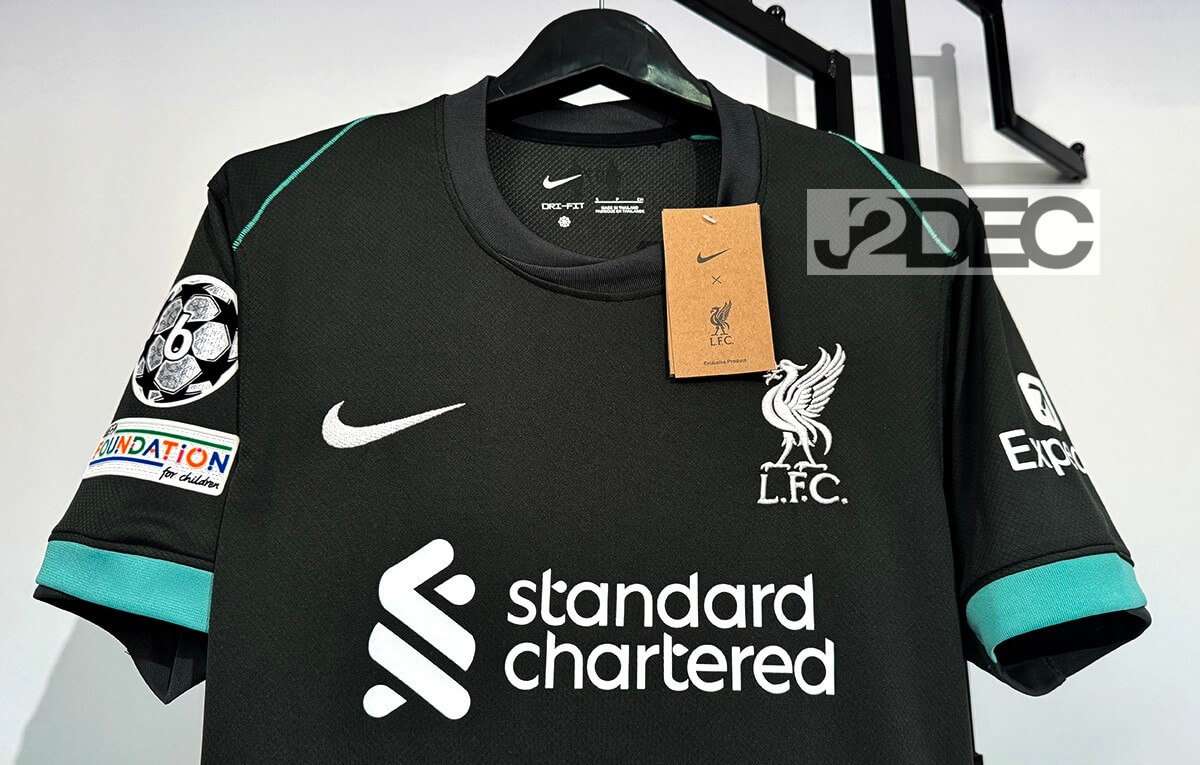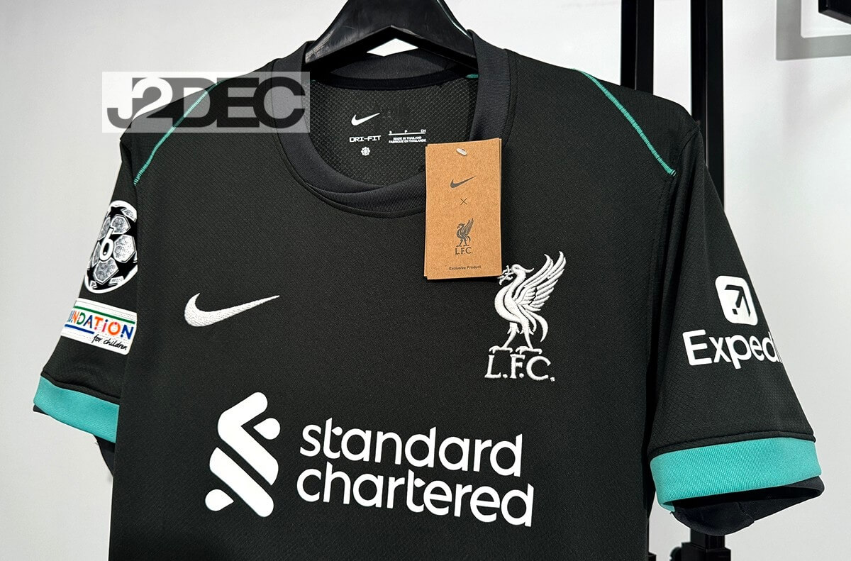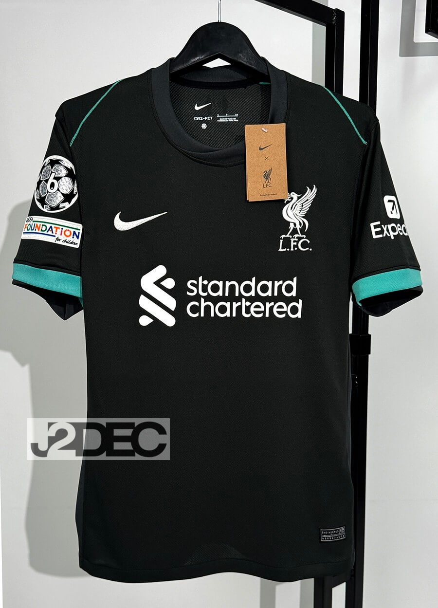 Liverpool ลิเวอร์พูล ชุดเยือน Away เกรดแฟนบอล ปี 2024/25 (อาร์ม UCL + ชื่อนักเตะ + เบอร์)