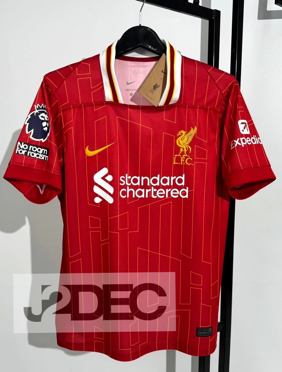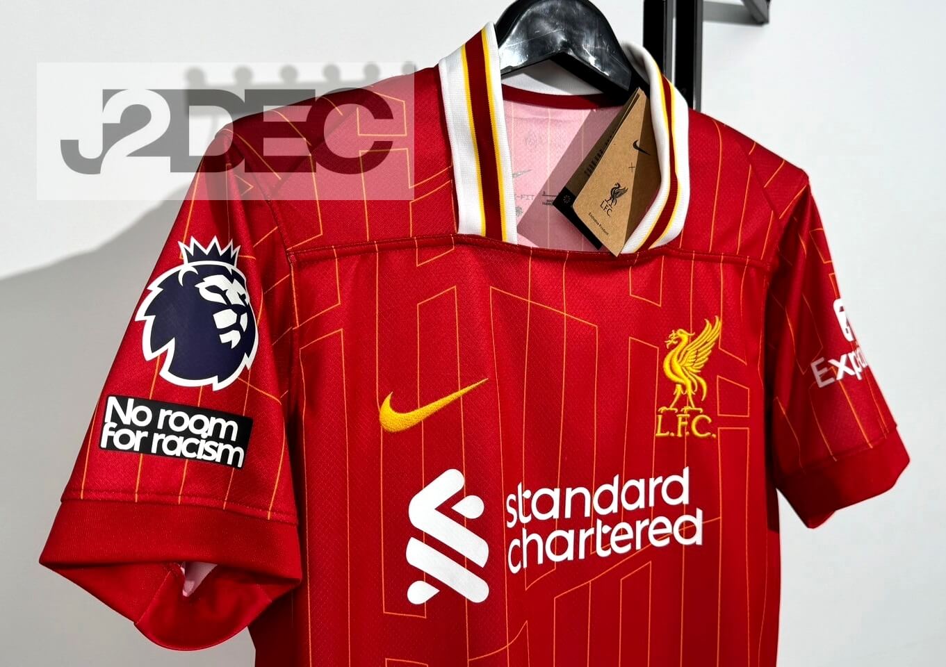 Liverpool ลิเวอร์พูล ชุดเหย้า เกรดแฟนบอล ปี 2024/25 (อาร์ม พรีเมียร์ลีก + ชื่อนักเตะ + เบอร์)