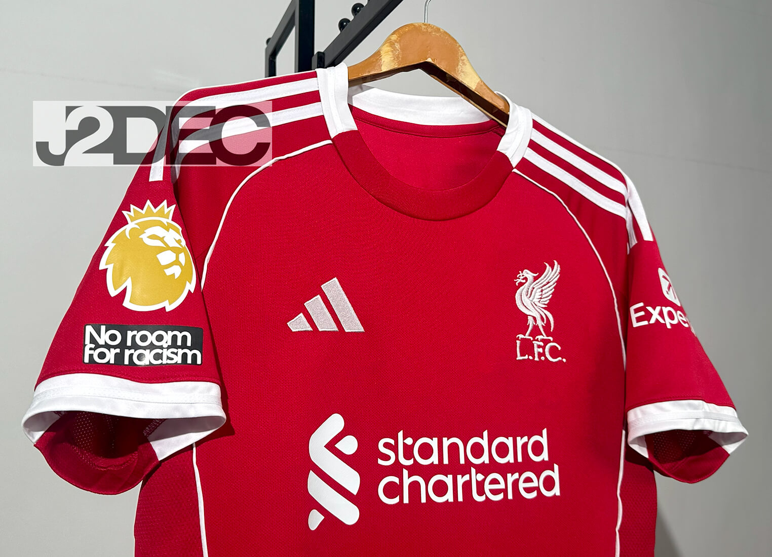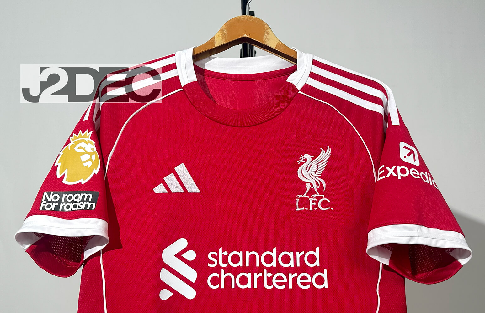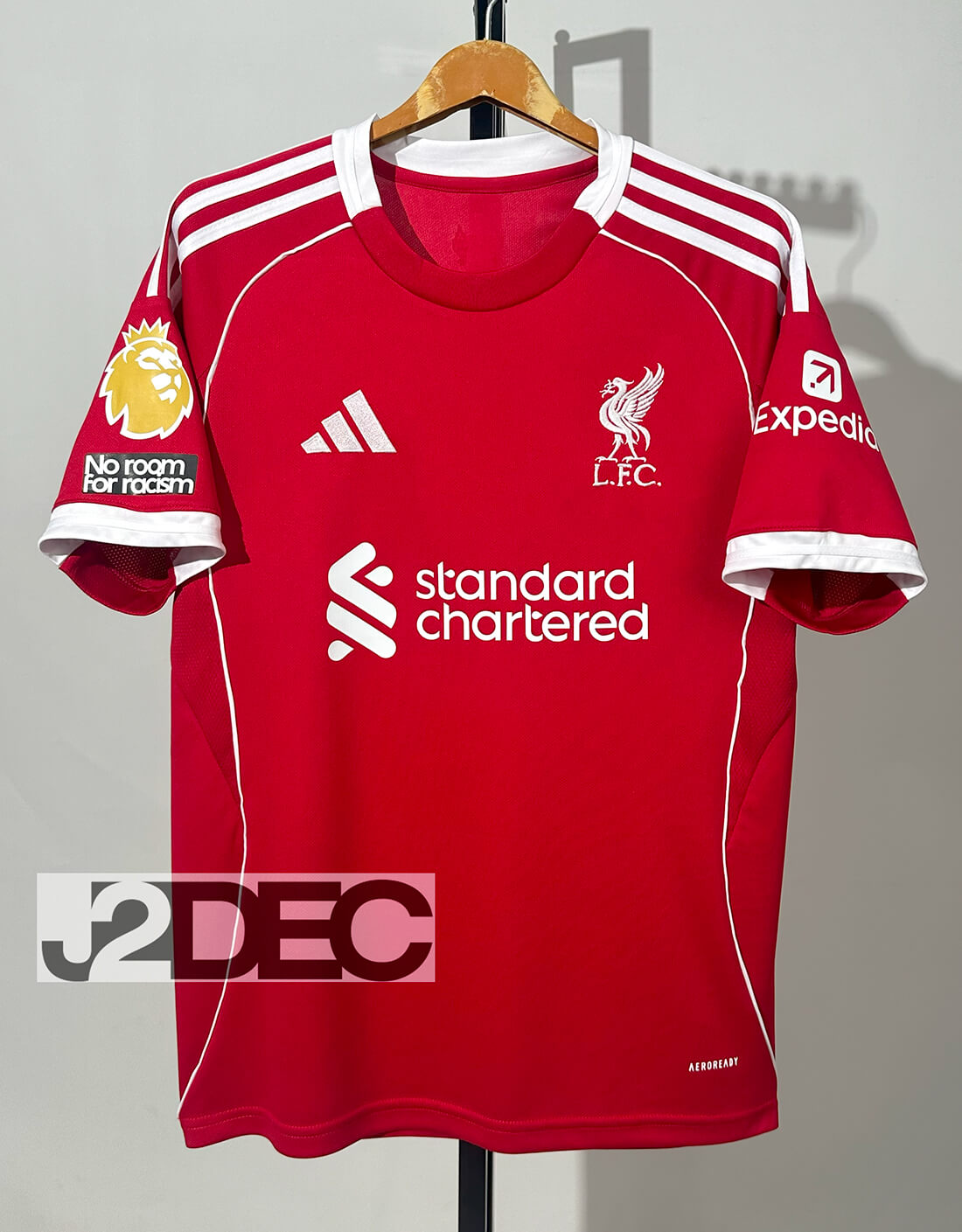 Liverpool ลิเวอร์พูล ชุดเหย้า เกรดแฟนบอล ปี 2025/26 (อาร์ม พรีเมียร์ลีก + ชื่อนักเตะ + เบอร์)