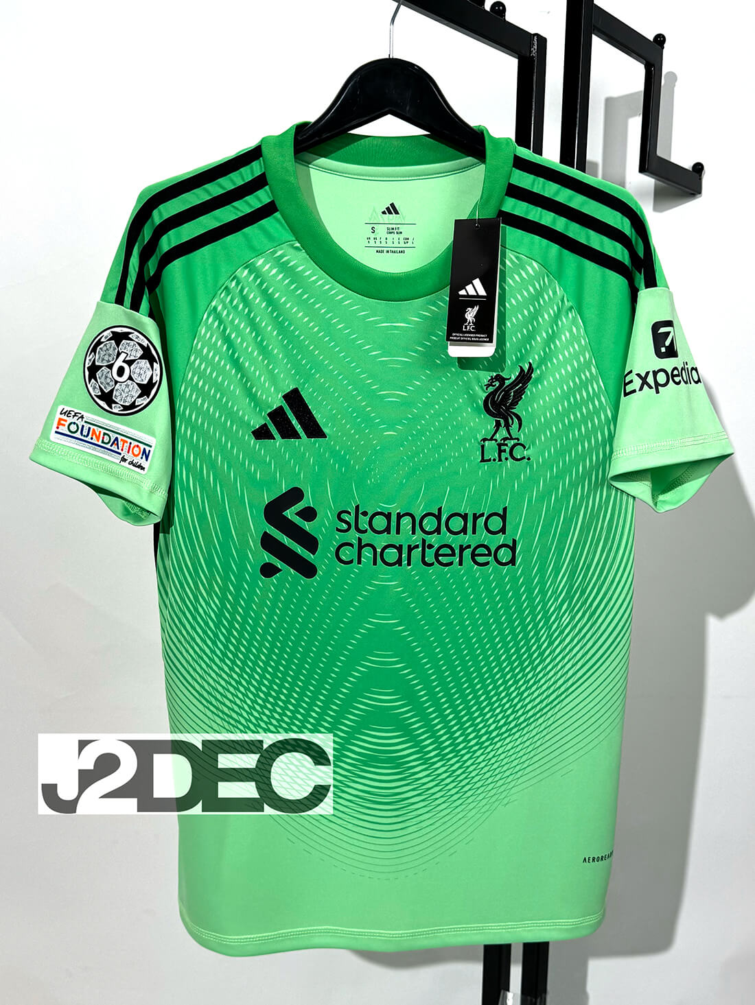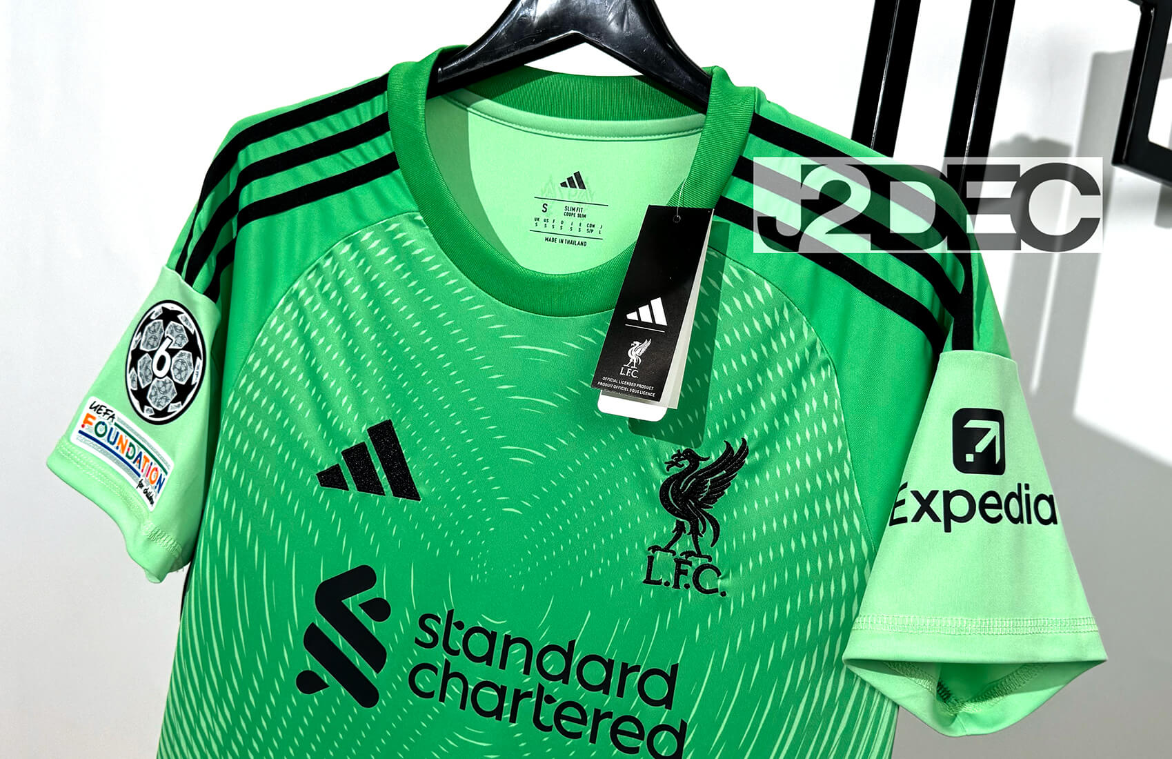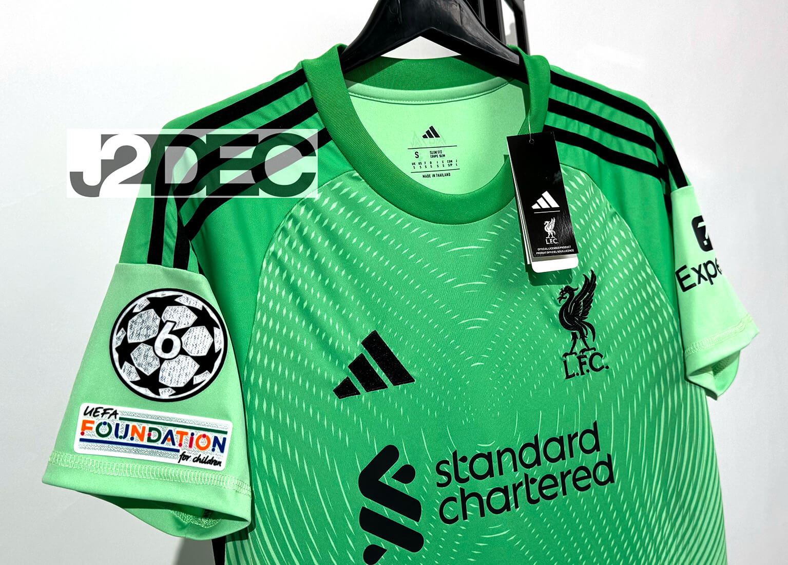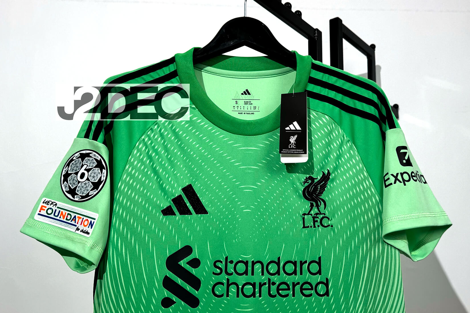 Liverpool ลิเวอร์พูล GK ชุดเหย้า Home เกรดแฟนบอล ปี 2025/26 ( อาร์ม ยูฟ่าแชมป์เปี้ยนลีก+ชื่อนักเตะ+เบอร์ )
