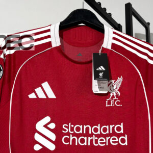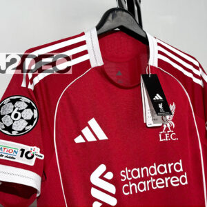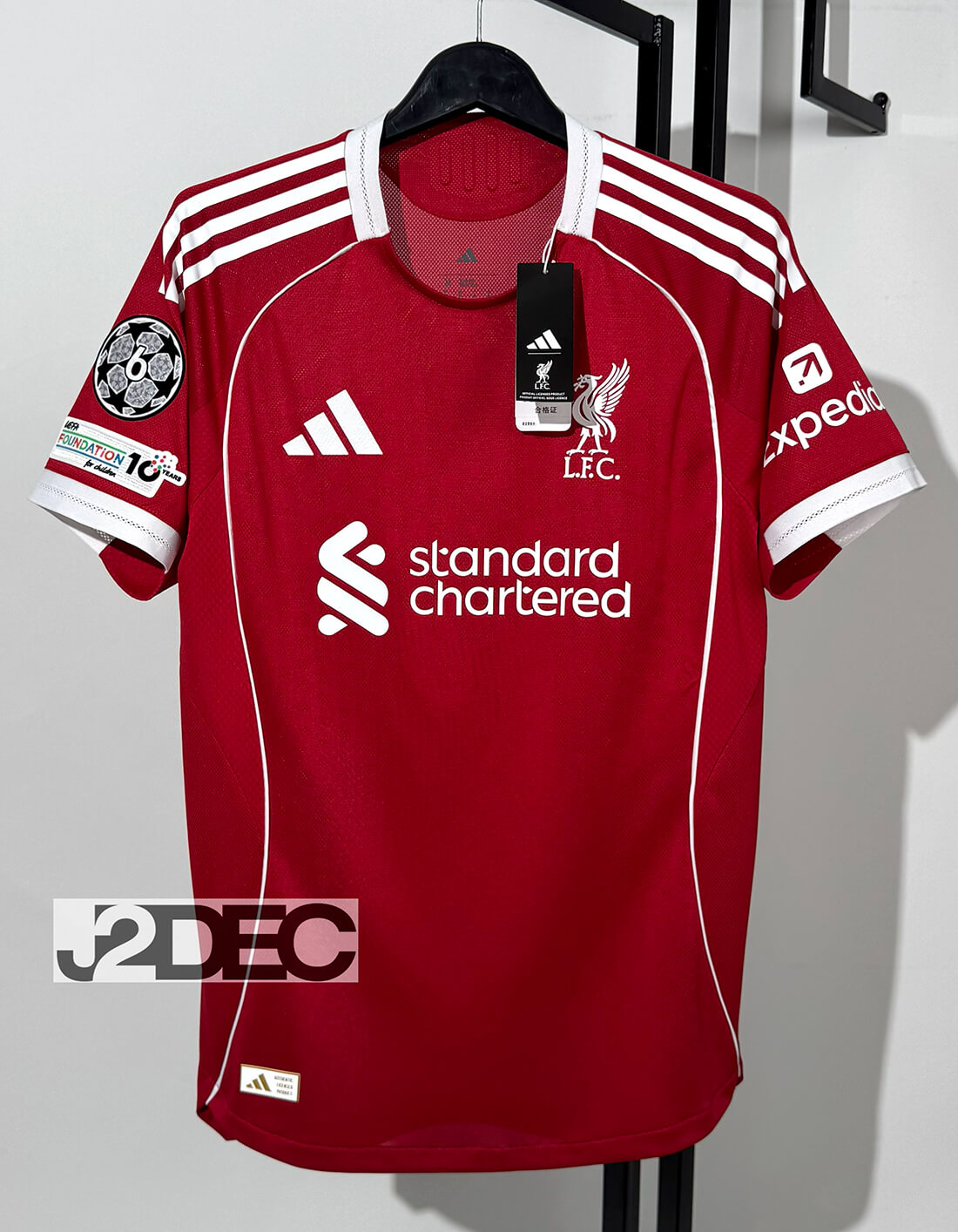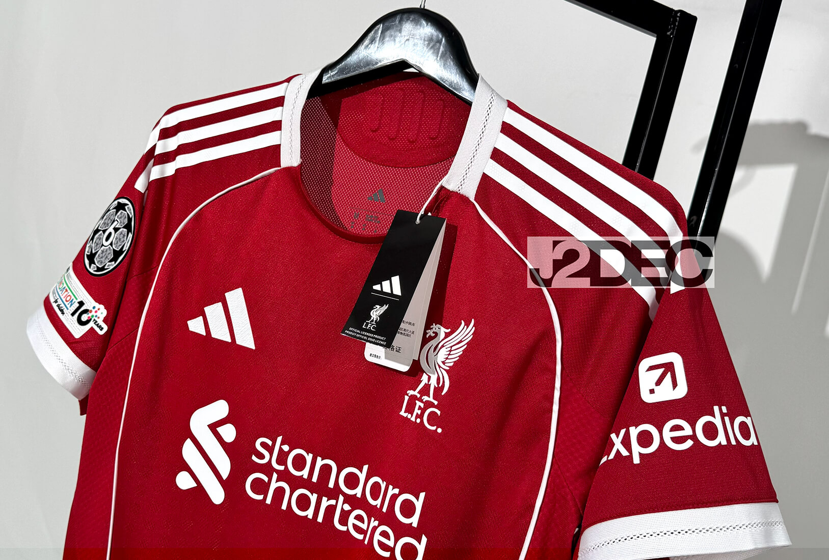 Liverpool ลิเวอร์พูล ชุดเหย้า Home เกรดนักเตะ PLAYER ปี 2025/26 (อาร์ม ยูฟ่าแชมป์เปี้ยนลีก + ชื่อนักเตะ + เบอร์)