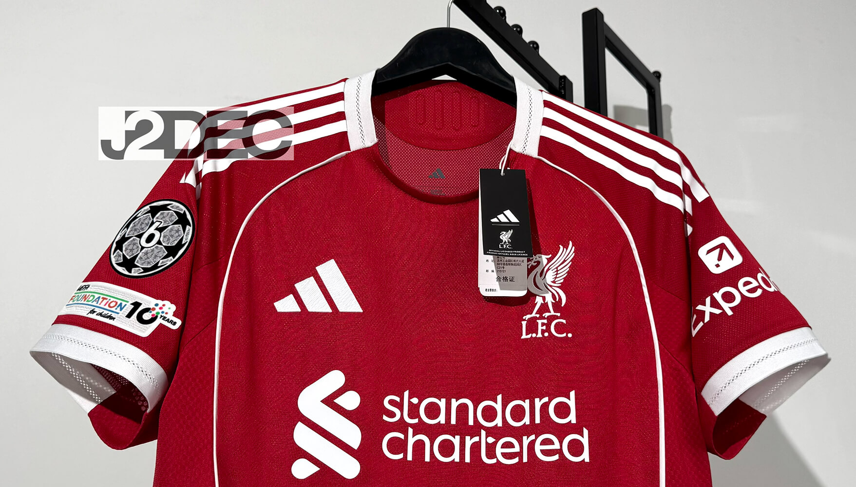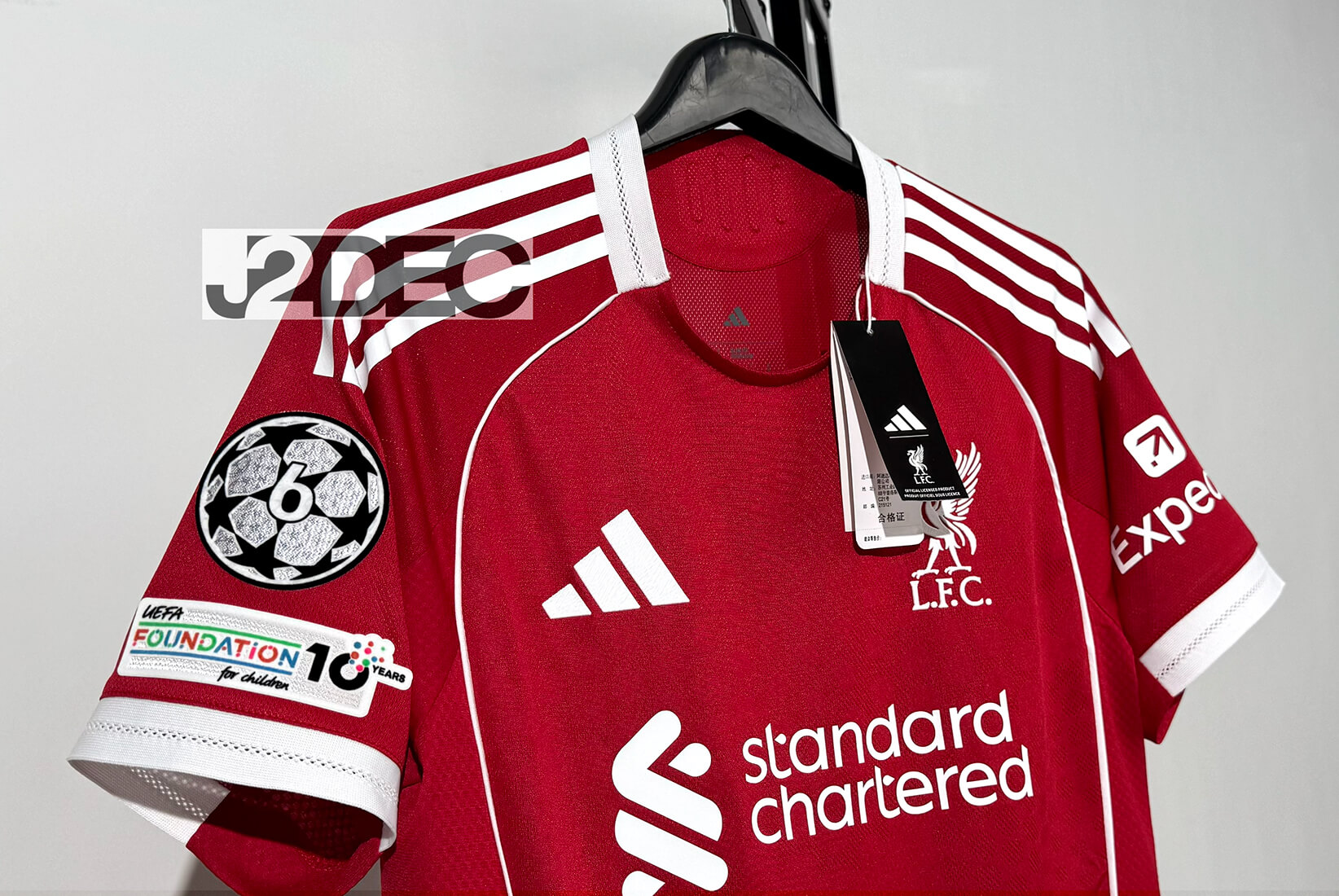 Liverpool ลิเวอร์พูล ชุดเหย้า เกรดนักเตะ ปี 2025/26 (อาร์ม ยูฟ่าแชมป์เปี้ยนลีก + ชื่อนักเตะ + เบอร์)