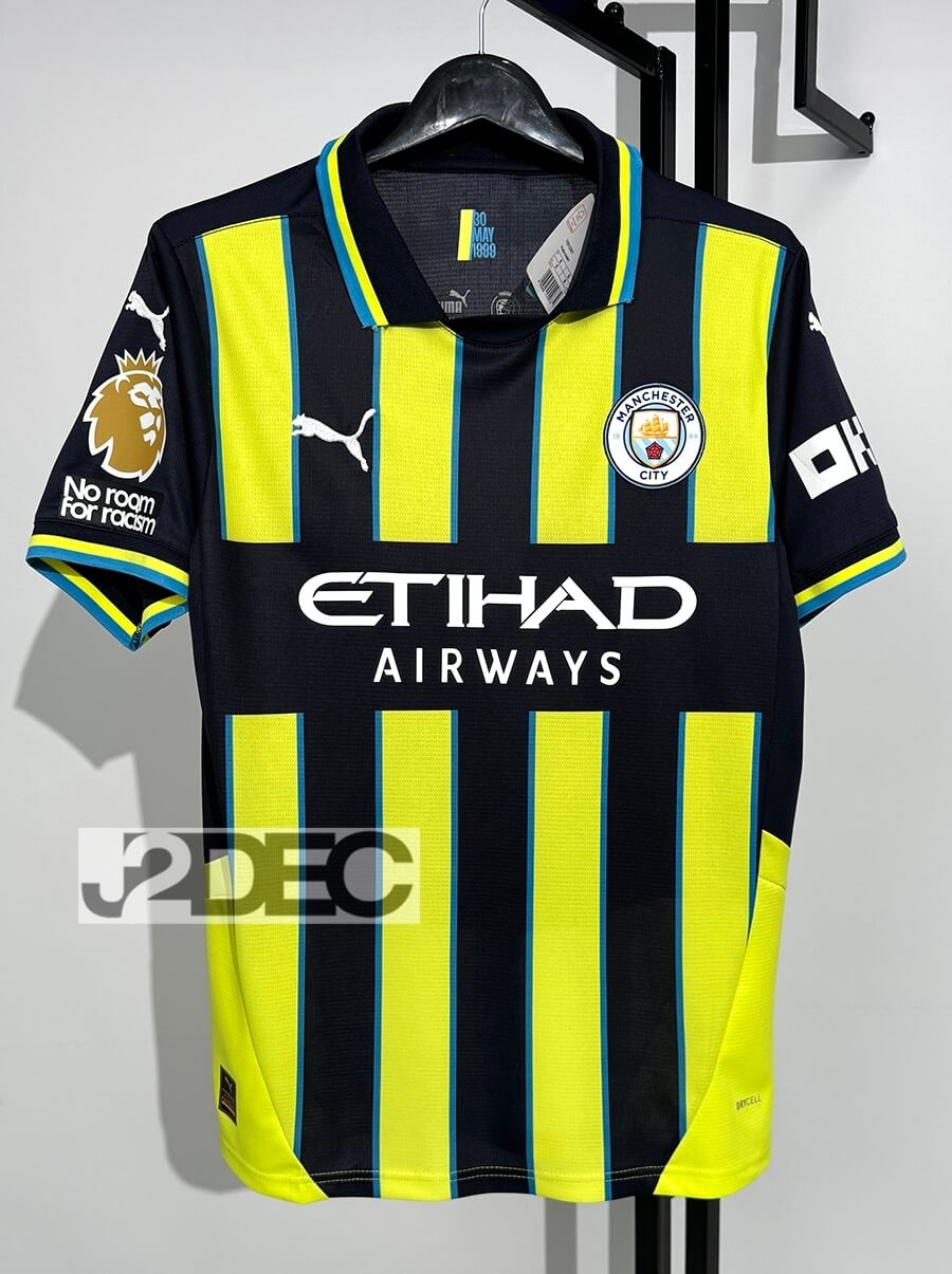 Man City แมนซิตี้ ชุดเยือน Away เกรดแฟนบอล ปี 2024/25 (อาร์ม พรีเมียร์ลีก + ชื่อนักเตะ + เบอร์)