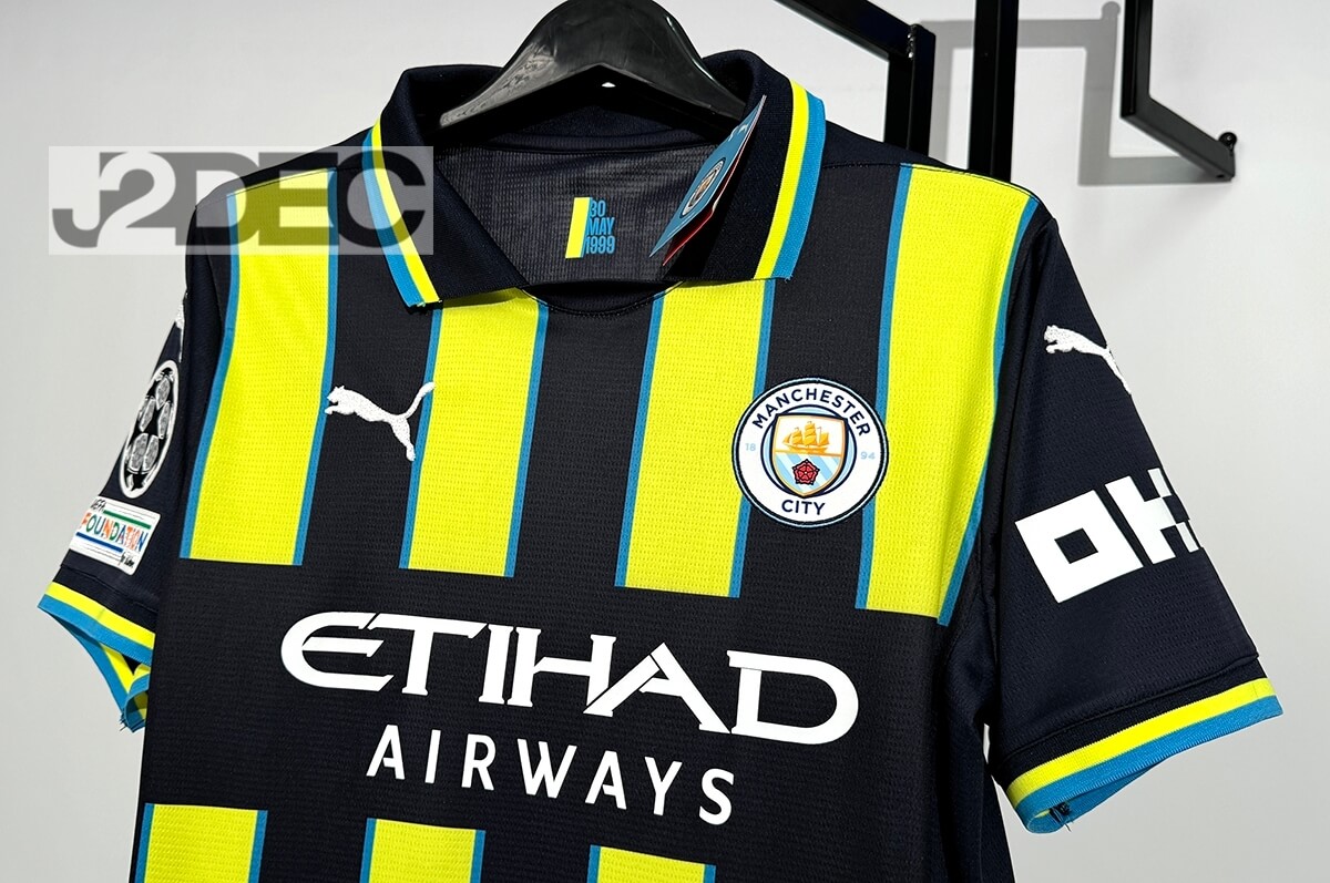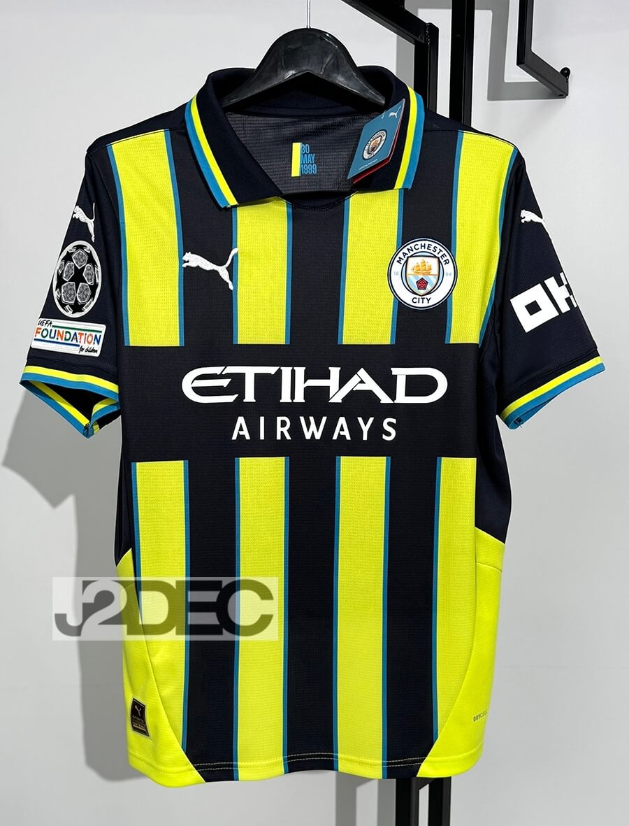 Man City แมนซิตี้ ชุดเยือน Away เกรดแฟนบอล ปี 2024/25 (อาร์ม UCL + ชื่อนักเตะ + เบอร์)