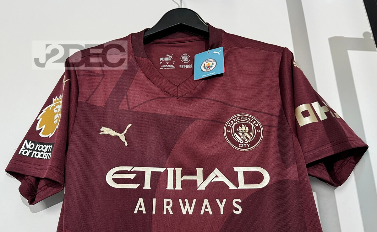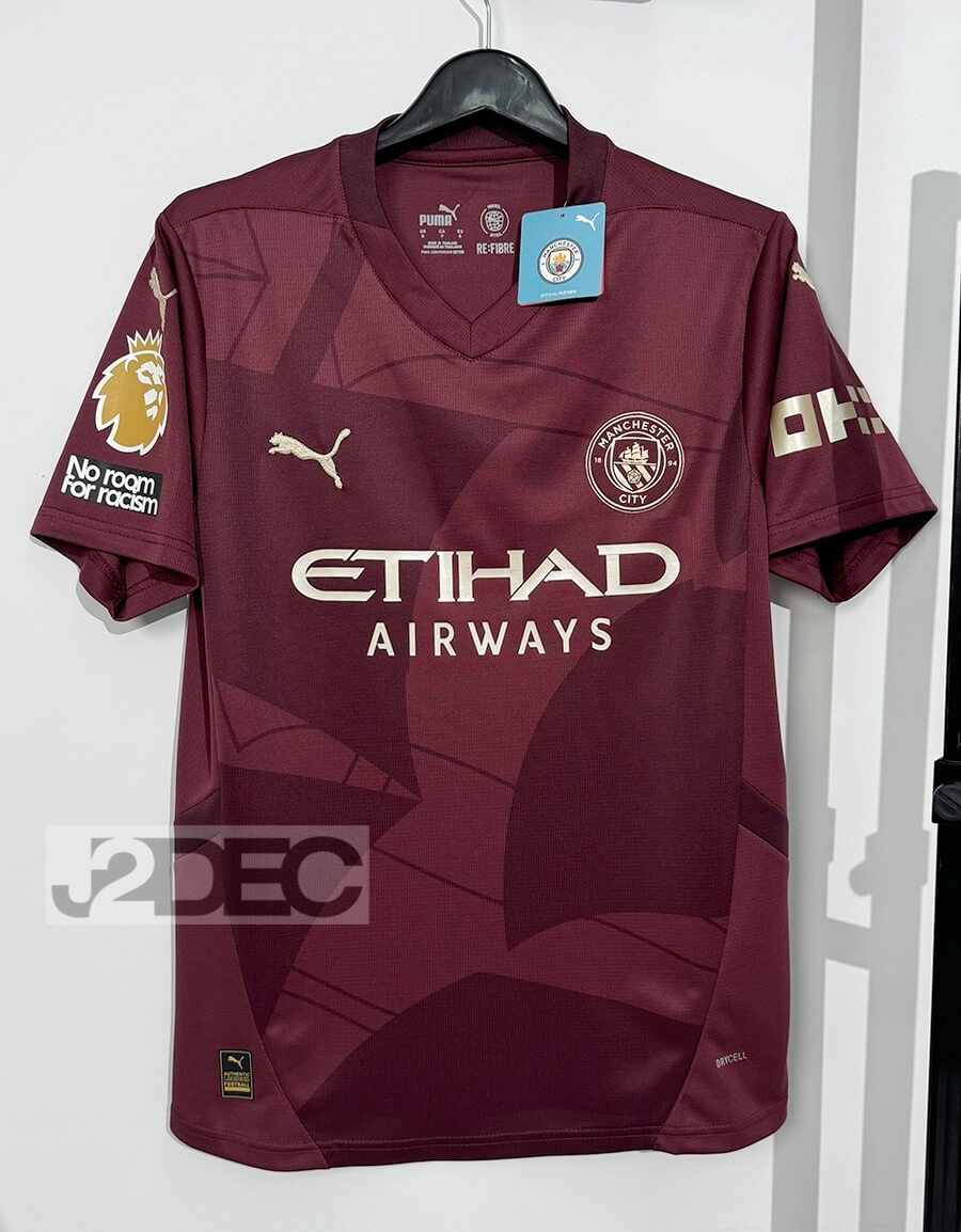 Man City แมนซิตี้ ชุดสาม Third เกรดแฟนบอล ปี 2024/25 (อาร์ม พรีเมียร์ลีก + ชื่อนักเตะ + เบอร์)